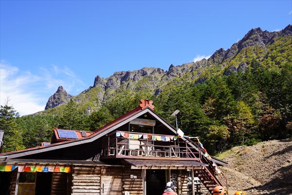 登山開始2時間ほどで、はじめの拠点『業者小屋』に到着。