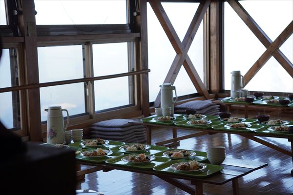 赤岳頂上山荘は、いい意味で the山小屋 という感じでした。天の窓から景色を見ながらゆったりと過ごすひと時は最高です。ごはんは他の山荘と比べると質素に見えるかもしれませんが、米と味噌汁がお代わり自由でおなか一杯食べられます。