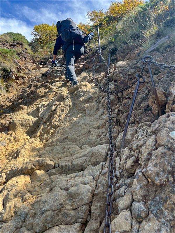 業者小屋-地蔵の頭までは1時間ほどの急登になります。階段や鎖場など、結構高度感のある登りでした。