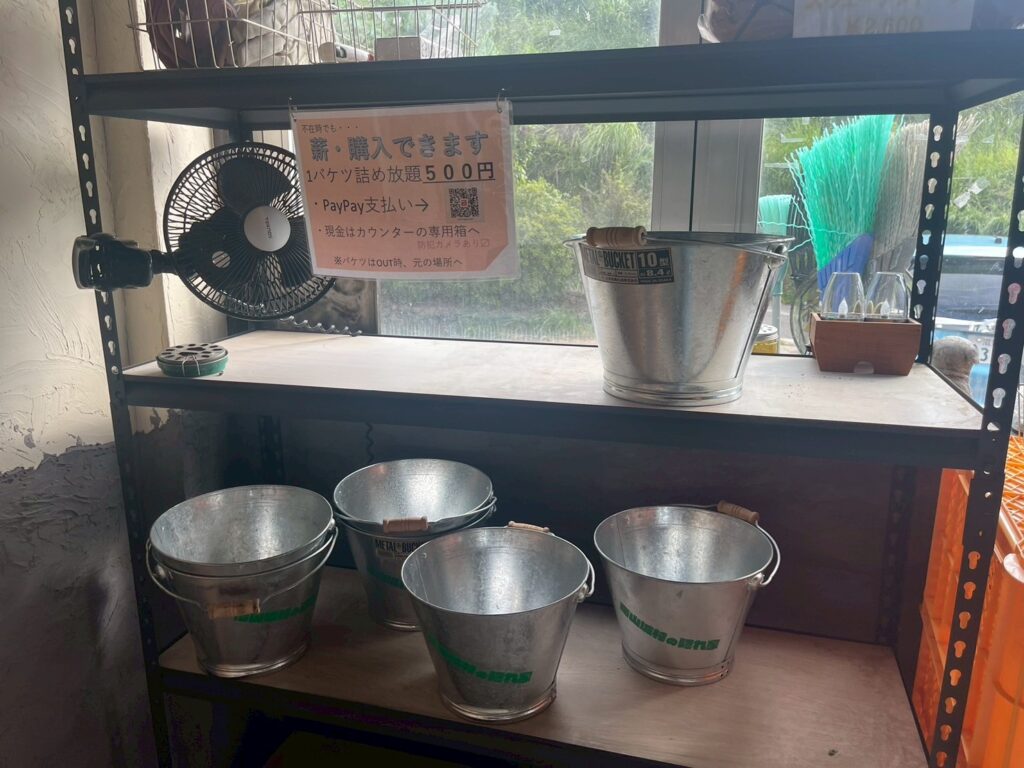 薪は500円でバケツに詰め放題ですが、遠慮してると全然はいりません。恥じらいを捨ててガメツく積みましょう。隣のサイトの人はバケツというよりほぼ両手で抱えていたのですが、バケツから落ちなければどんな積み方をしてもいいとの説明があり笑いました。